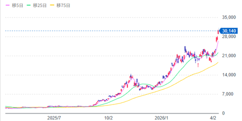 キオクシア株価、初の3万円台 連日で上場来高値を更新