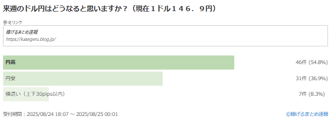 ・ジャクソンホールのパウエル氏、植田氏の発言を見て週明けは円安でのスタート