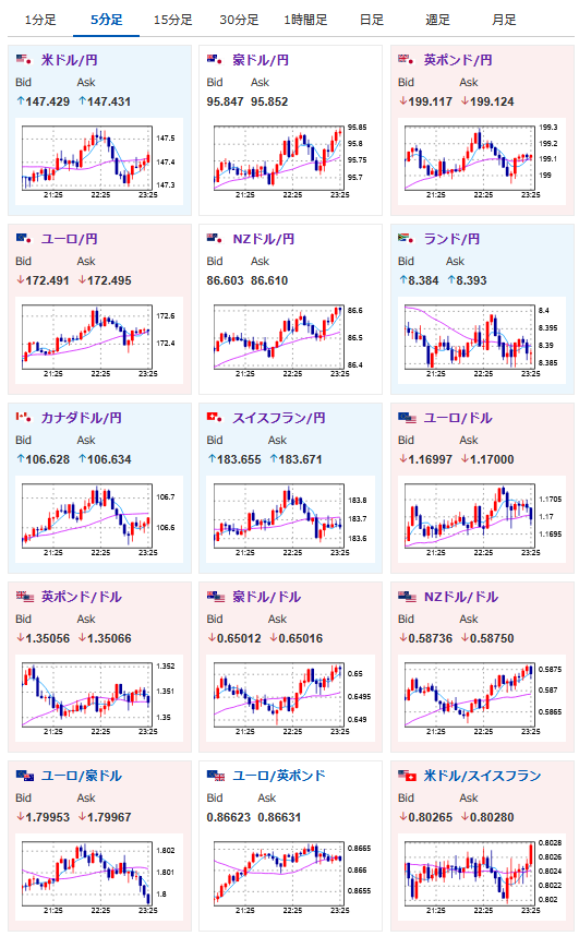 前回の記事からちょっと円安に動いたレンジ圏といったところ。