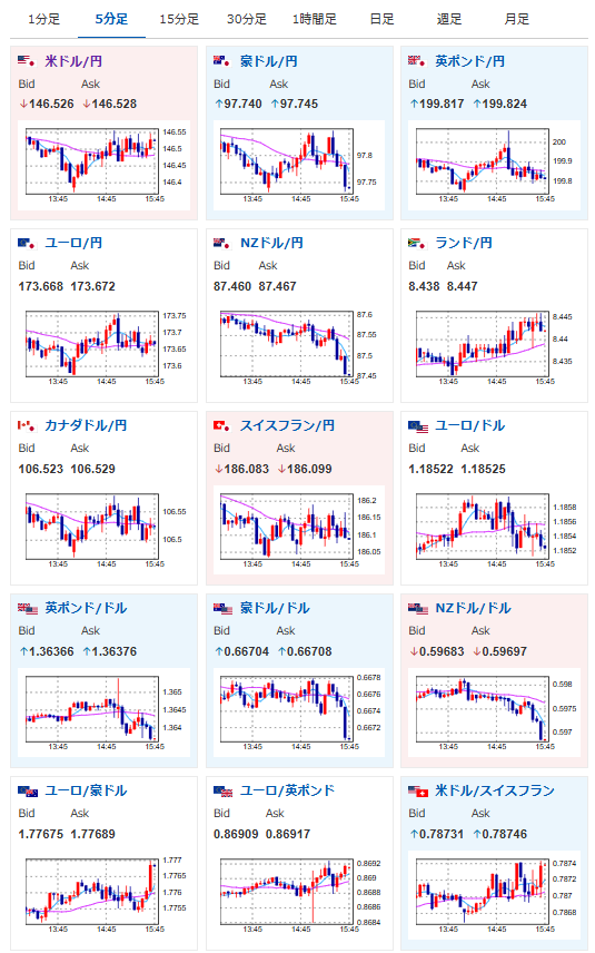 【相場】市場は全体的にFOMC前で調整気味 株、金がマイナス圏 ドル円は146円台半ば ビットコインは伸び継続