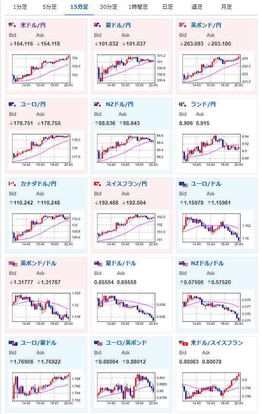 今のところ、この流れを変える材料は出ていないけれど、1ドル154円は企業の想定レートから少しずれてきているため、日本の政府要人からの口先介入に注意が必要だお。