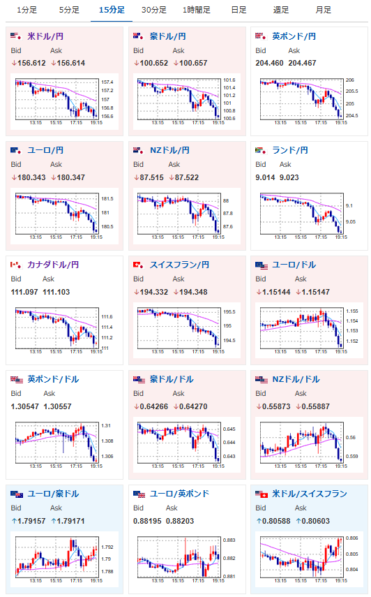 どこかで反転するかな?と思っていたけれど、本日は一方的に円買い相場だお。