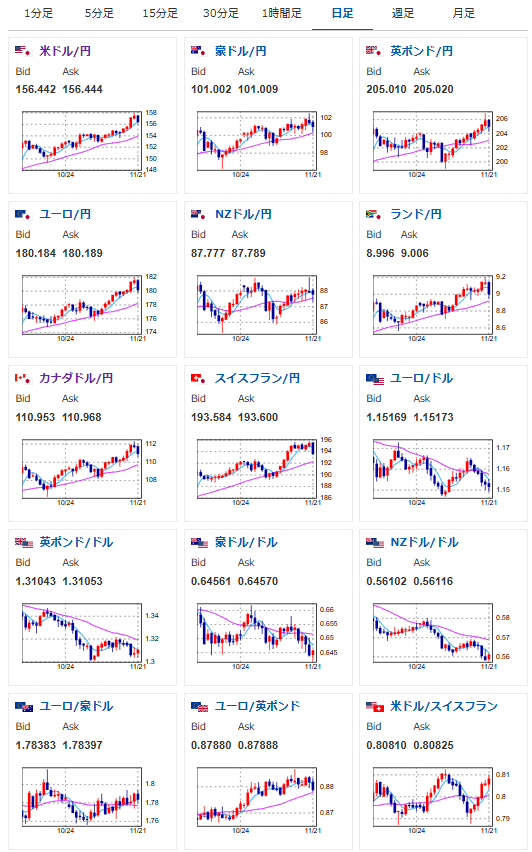片山財務相の口先介入の語気が一段階上がったことにより、金曜日は円高の流れが続いて156円台半ばに。