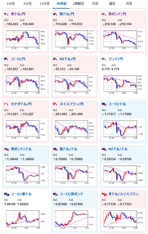 為替のほうもマチマチな動きが続いており、ドル円は相変わらず156円付近でウロウロ。